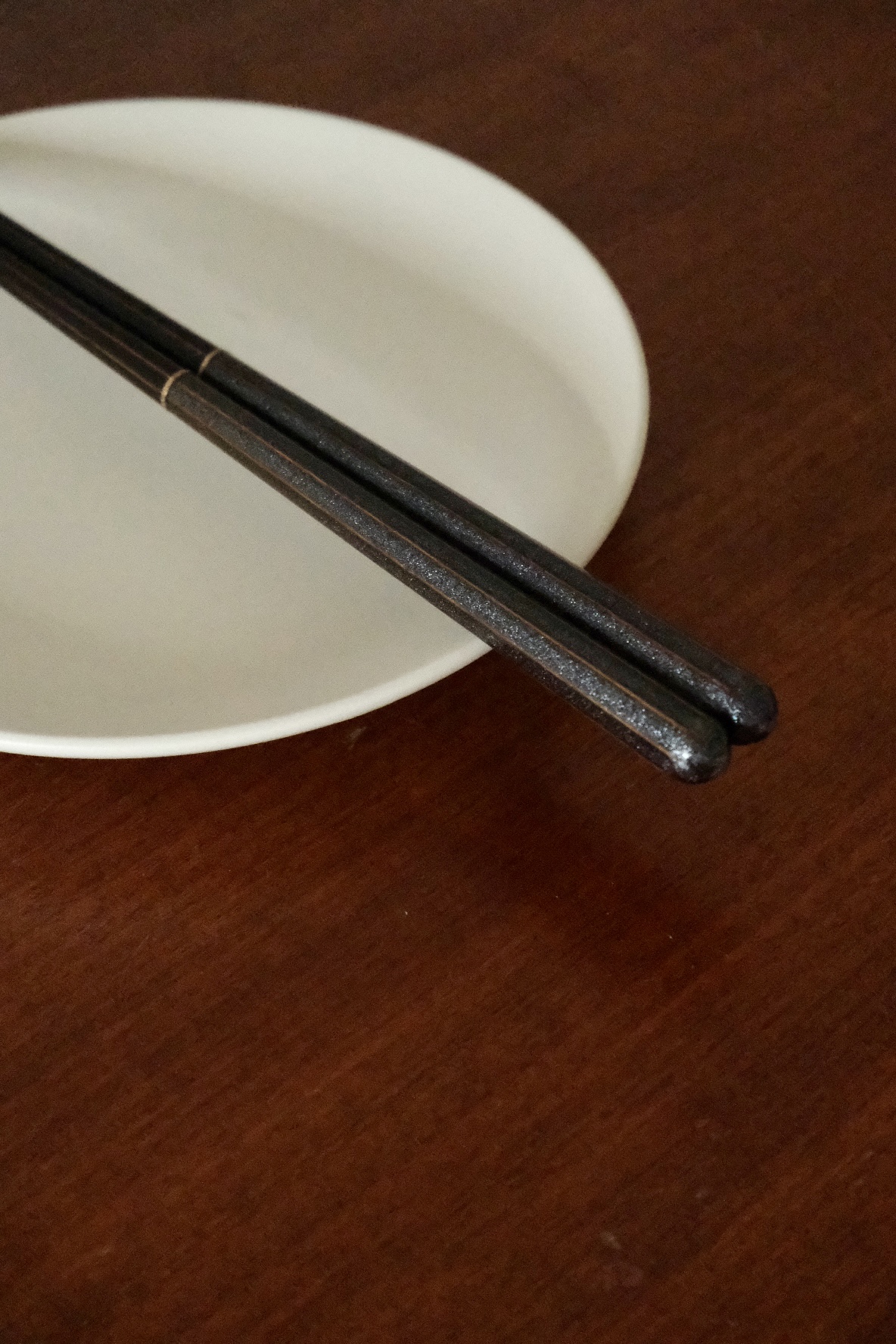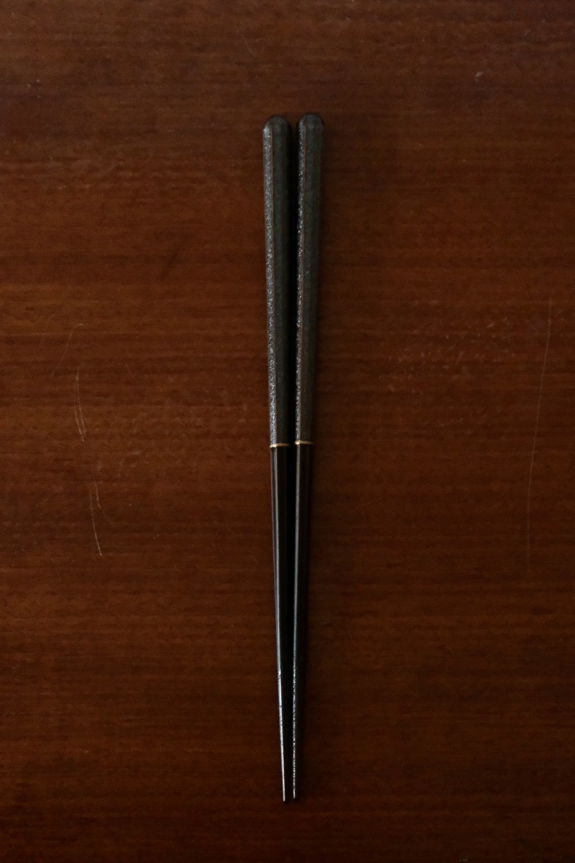 Japanese style Natural wood chopsticks with an unique Octagonal shape, including Gold embossed lines and acrylic urethane paint. Made in Japan.