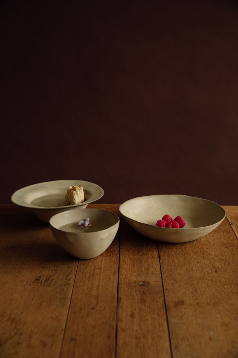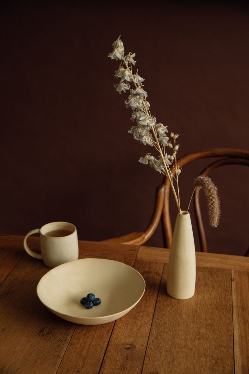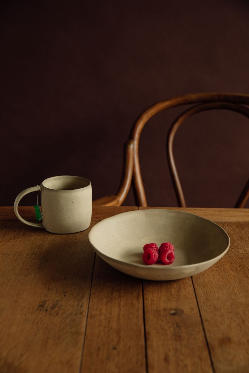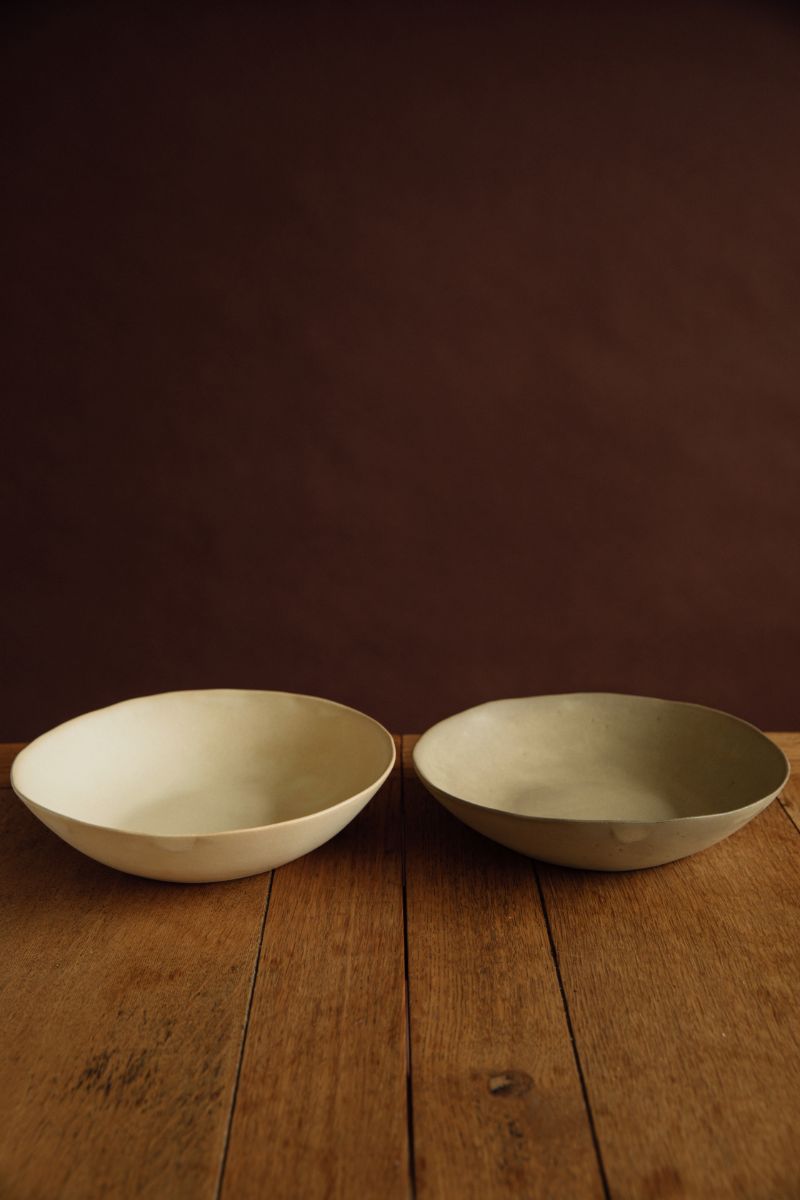 Focusing on nature, our potter Yukina Omori uses neutral colors like beige and sand to craft the pieces in natural shape, along with satin finish. The simple yet clean lines make every piece unique.